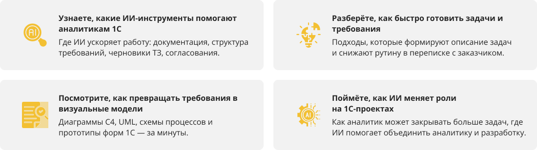 Дмитрий Белоруков и Александр Тычков — Закрываем разрыв между аналитиком и разработчиком 1С при помощи ИИ